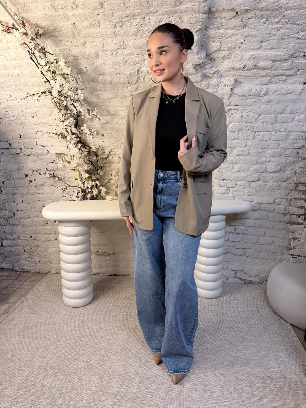 Stijlvolle oversized blazer met een open split achterkant. Gemaakt van een soepele, comfortabele stof voor een moderne en chique look. Perfect voor zowel casual als zakelijke outfits.
