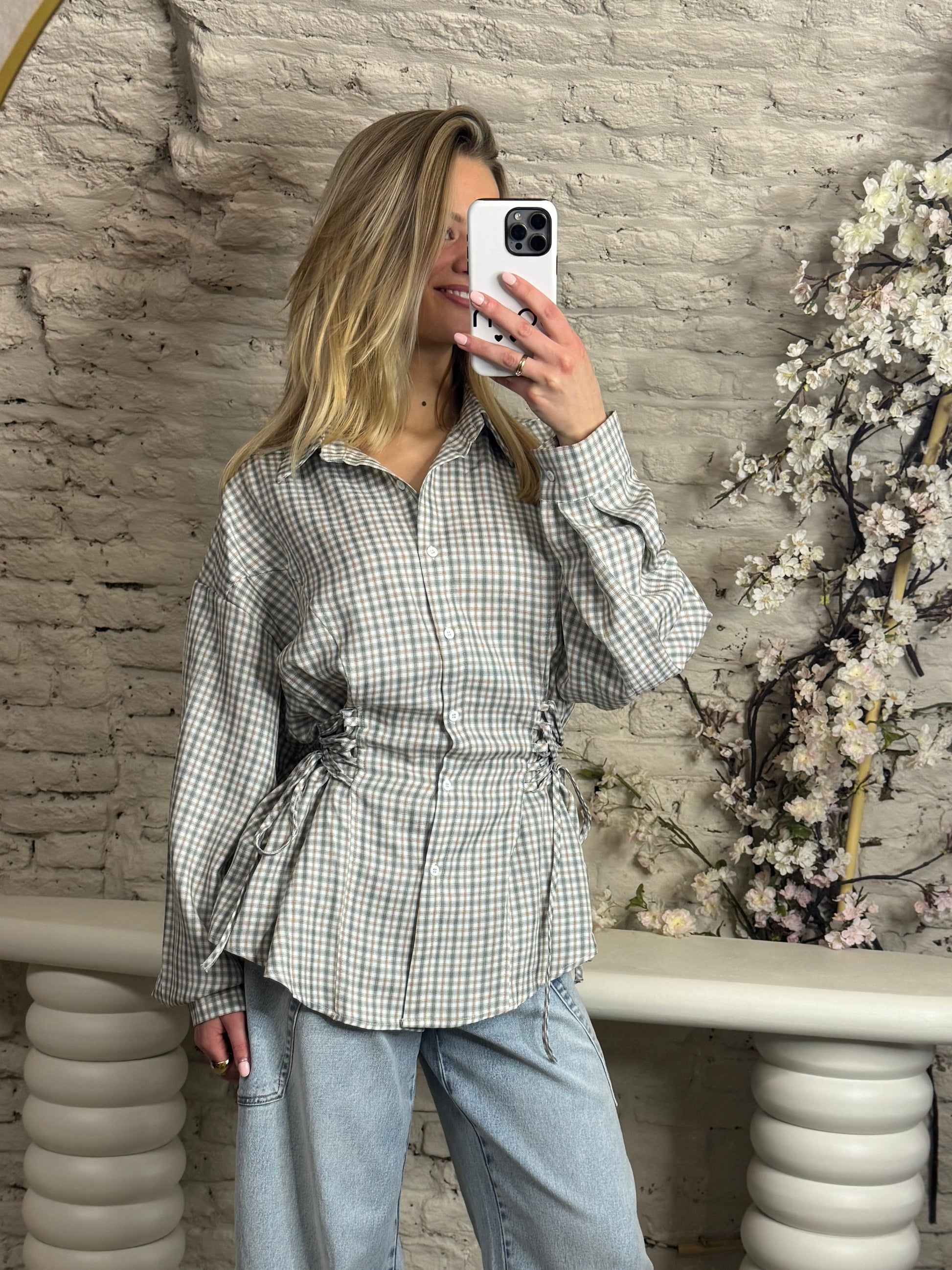 Getailleerde blouse met een snatched waist voor een vrouwelijke fit, ook superleuk met een baggy/balloon jeans!